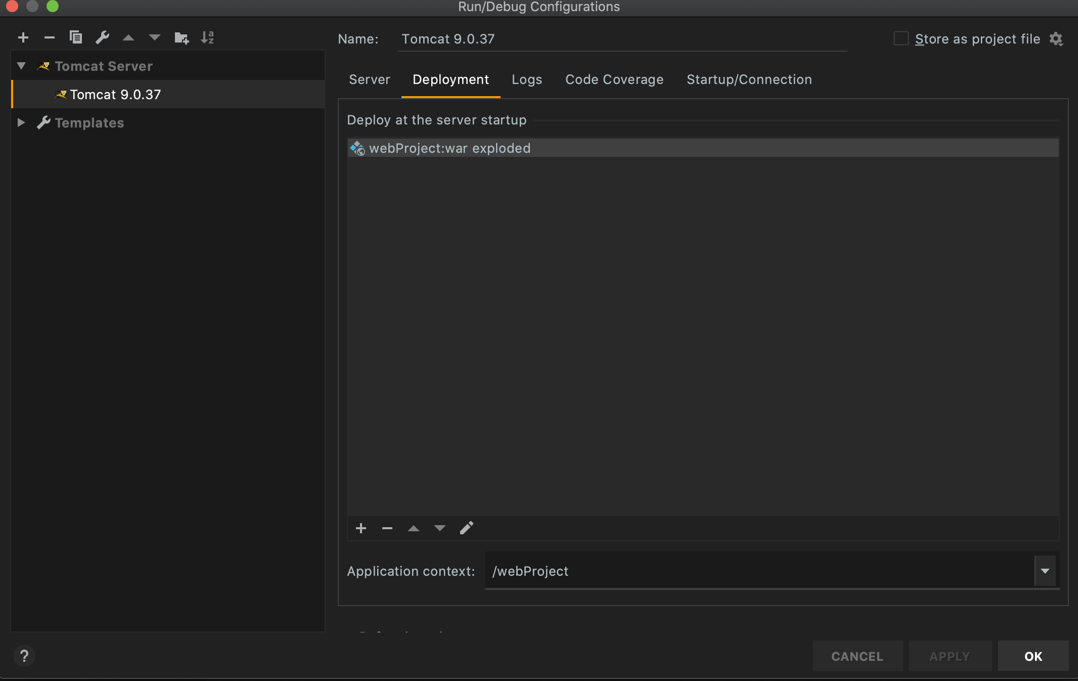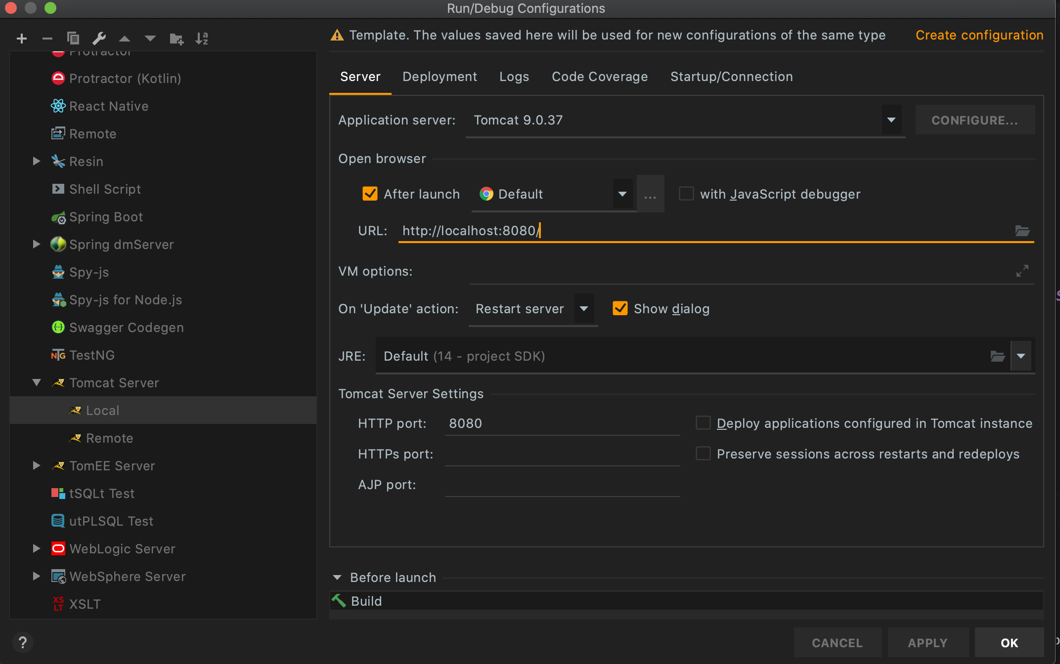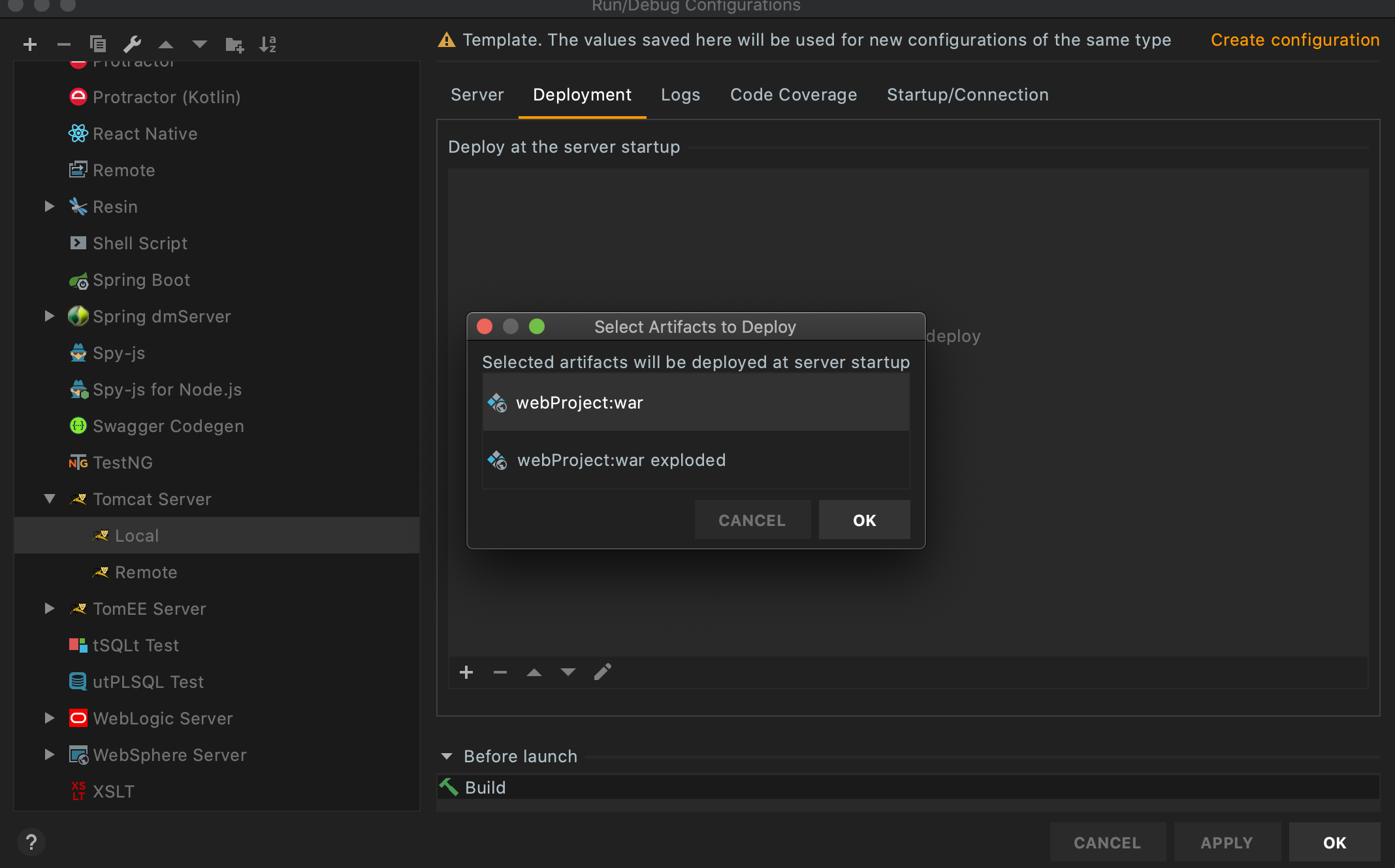 2) template > Tomcat Server > Local > Application ser