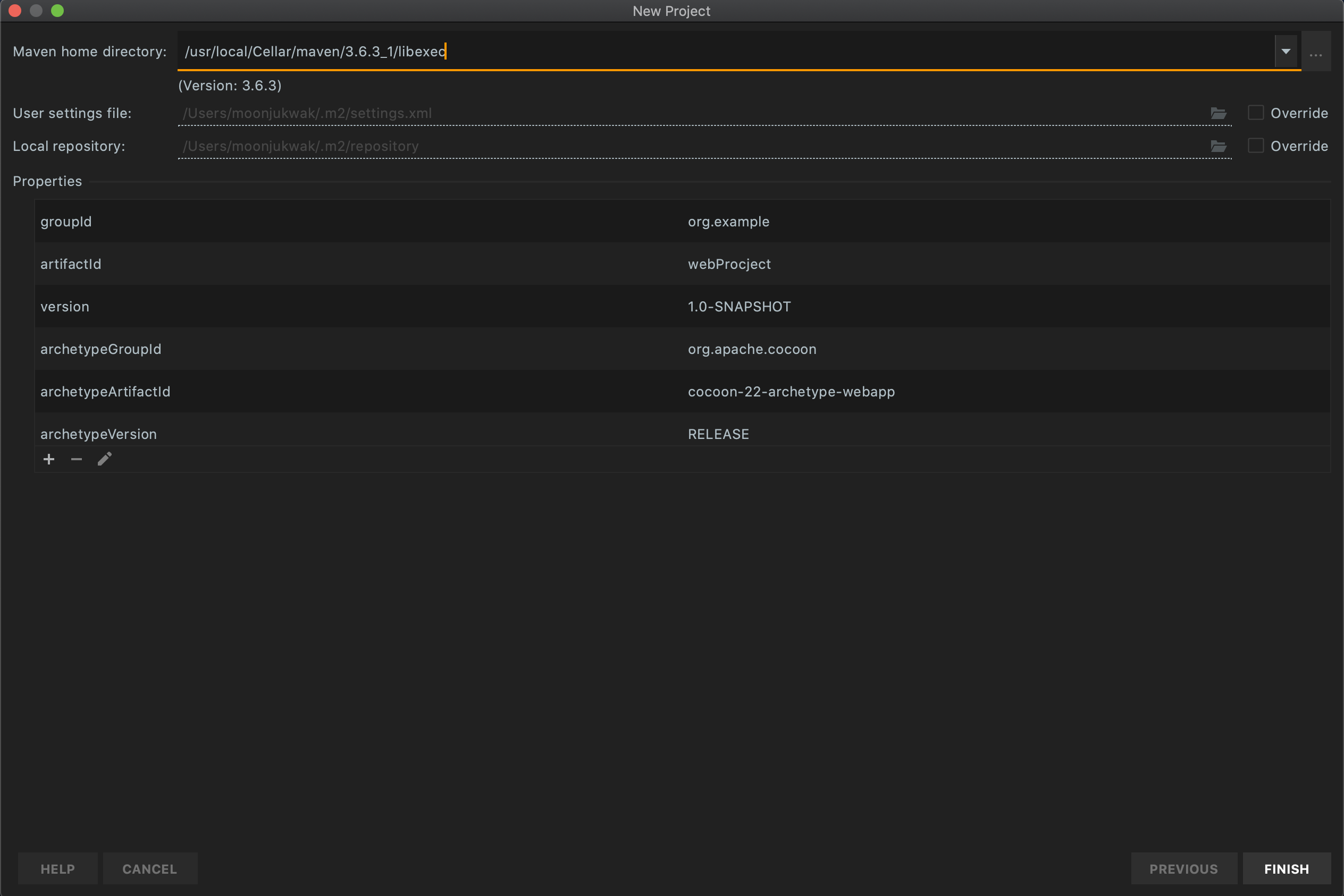 - 내장 메이븐 or 설치한 메이븐 경로 중 선택