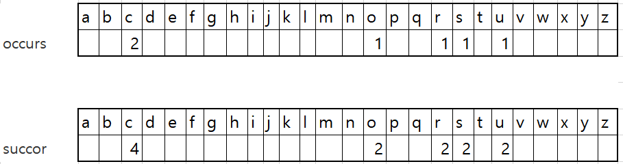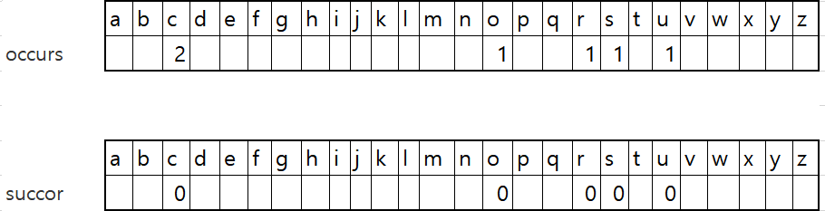 위의 풀이는 총 4번의 순회를 하게 되는데, 이를 줄일 수 있다. 처음에 occurs를 count한 배열에서 succor의 알파벳 카운트를 뺀다. 그렇게 되면 배열는 음수 or 0 or 양수가 남아있게 된다.