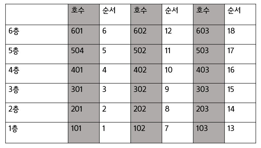 문제 ACM 호텔 매니저 지우는 손님이 도착하는 대로 빈 방을 배정하고 있다. 고객 설문조사에 따르면 손님들은 호텔 정문으로부터 걸어서 가장 짧은 거리에 있는 방을 선호한다고 한다. 여러분은 지우를 도와 줄 프로그램을 작성하고자 한다. 즉 설문조사 결과 대로 호텔 정문으로부터 걷는 거리가 가장 짧도록 방을 배정하는 프로그램을 작성하고자 한다. 문제를 단순화하기 위해서 호텔은 직사각형 모양이라고 가정하자. 각 층에 W 개의 방이 있는 H 층 건물이라고 가정